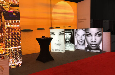 Step into the future of booth design with SEG light boxes. These sleek, illuminated frames hold vibrant fabric graphics, creating a stunning visual effect. The magic lies in the silicone edge graphics, which fit seamlessly into the frame, ensuring a crisp, clean look. This setup is perfect for showcasing detailed imagery or bold branding messages that demand attention.